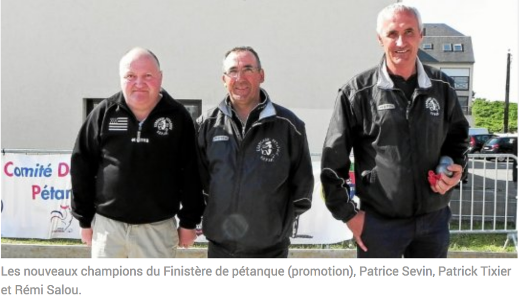 En avril 2011, Patrick Tixier et Patrice Sevin avaient décroché en doublette le titre de champion du Finistère de jeu provençal. Ronan Thomas, Gaël Parc, Michel Simon, du club de Lesneven, et Olivier Moal, Mikaël Daoudal, Arthur Gueguen prennent les places d’honneur en demi-finales.
