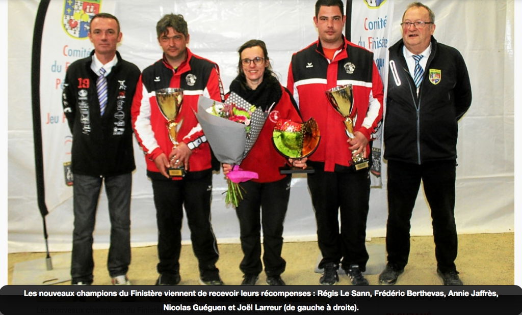 Le maire Jean-Michel Parcheminal a lancé le bouchon de la finale du tête à tête féminin qui mettait aux prises Annie Jaffrès du club local à Véronique Gallin, de Kersaint-Plabennec. Sans surprise, c’est Annie Jaffrès habituée aux podiums qui est devenue championne du Finistère par sa très nette victoire (13 à 3).