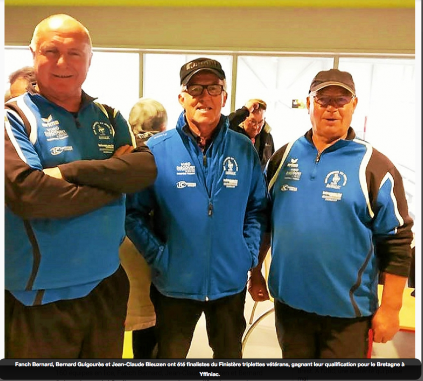 Dans le départemental triplettes vétérans à Plougastel-Daoulas avec 160 équipes en lice, Fanch Bernard, Jean-Claude Bleuzen et Bernard Guigourès ont été finalistes, remportant leur qualification pour le Bretagne. Ce samedi 4 mai les Bannalécois sont exempts du 3e tour de la coupe de France.