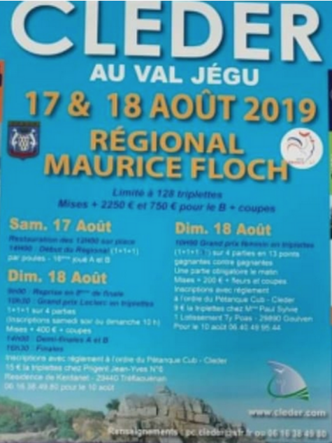 INSCRITS au Régional de CLEDER 17 ET 18 AOÛT 2019...
