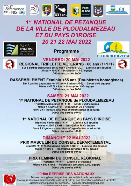 Adresse pour expédition du courrier :National de pétanque Terrain de pétanque de Keribin 29830 PLOUDALMEZEAU