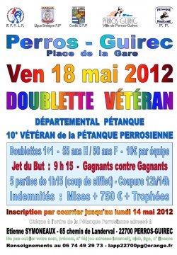 Les inscriptions pour notre "10° Départemental Pétanque Doublette Vétéran" du vendredi 18 mai 2012 ont déjà commencé.