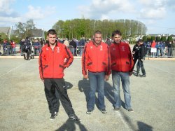 L'équipe Gouesnousienne Arnaud EVRARD, Mickaël BRENEOL, Jérémy GELEBART gagne difficilement 13/12 après une partie très indécise contre Serge TROAN, Jean-Michel KERVARREC et Michel RIOU (Pétanque Plourinoise).